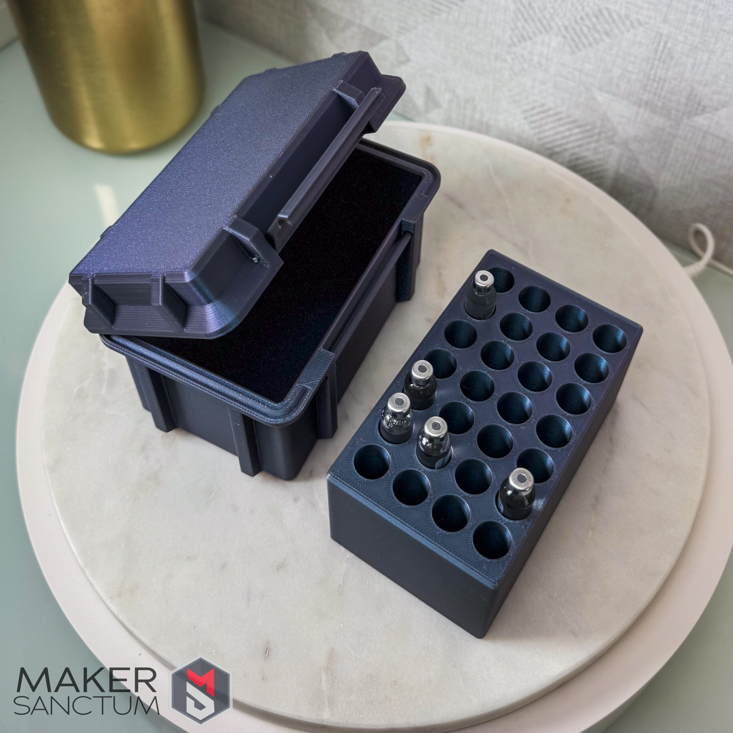 - Securely Holds 28 3ml Cartridges (with labels too!)